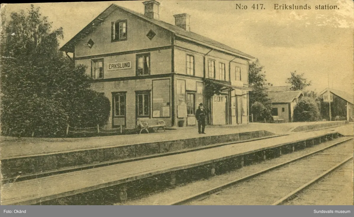 Vykort med motiv över järnvägsstationen i Erikslund.