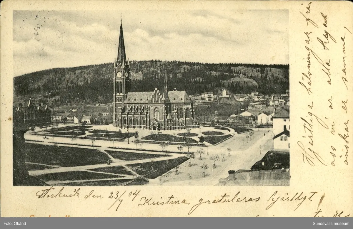 Vykort med motiv över Gustav Adolfs kyrka.