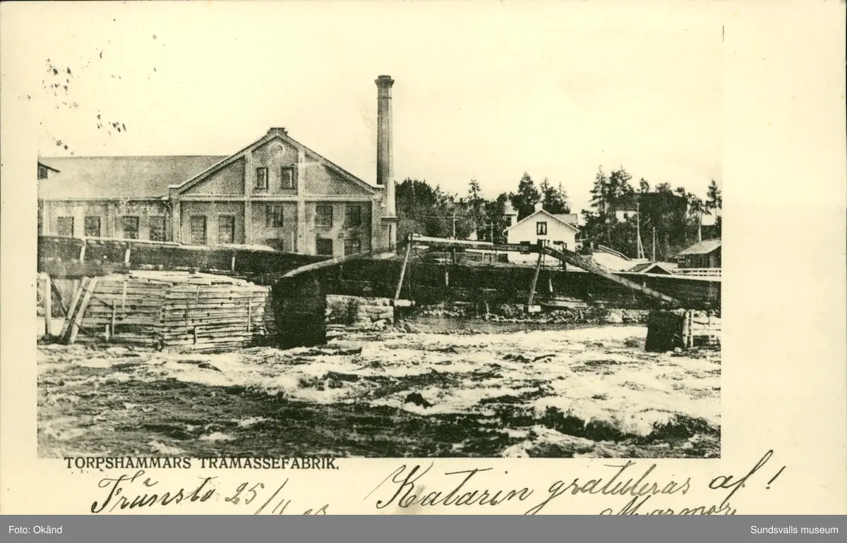 Vykort med motiv över trämassafabriken i Torpshammar.