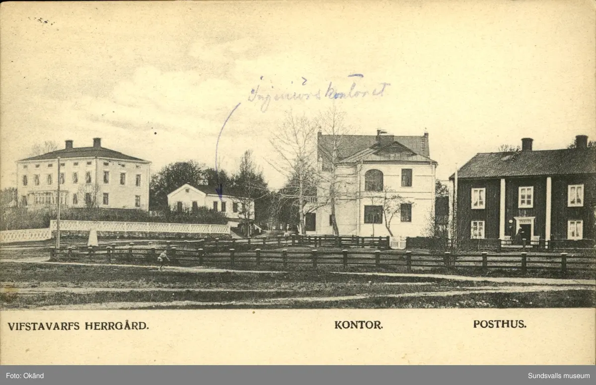 Vykort med motiv över Vivstavarvs herrgård och omkringliggande byggnader.