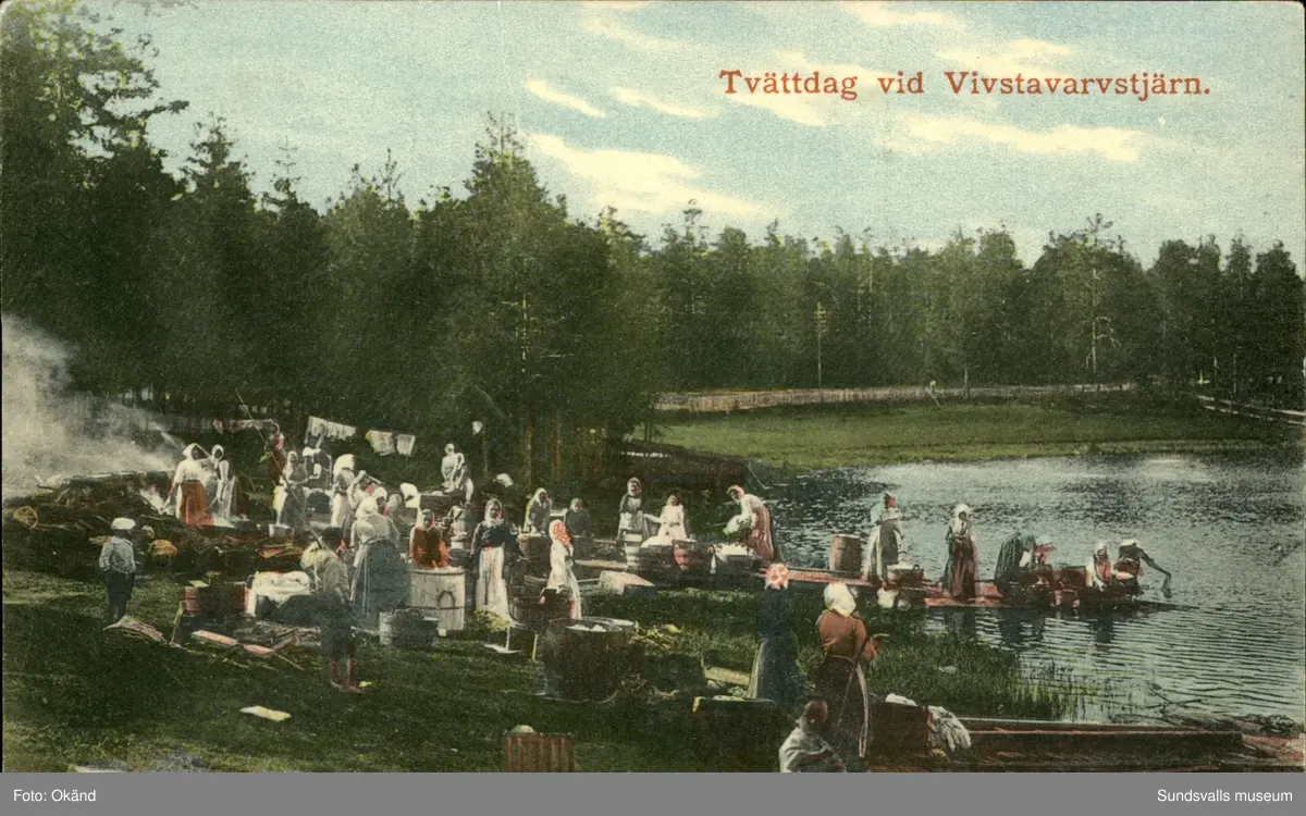 Vykort med motiv över tvättdag i Vivstavarvstjärn.