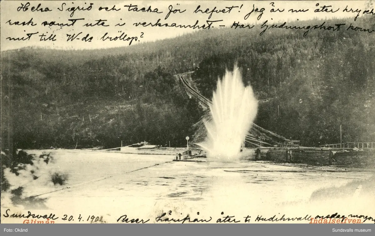 Vykort med motiv över Glimånrännan vid Indalsälven.