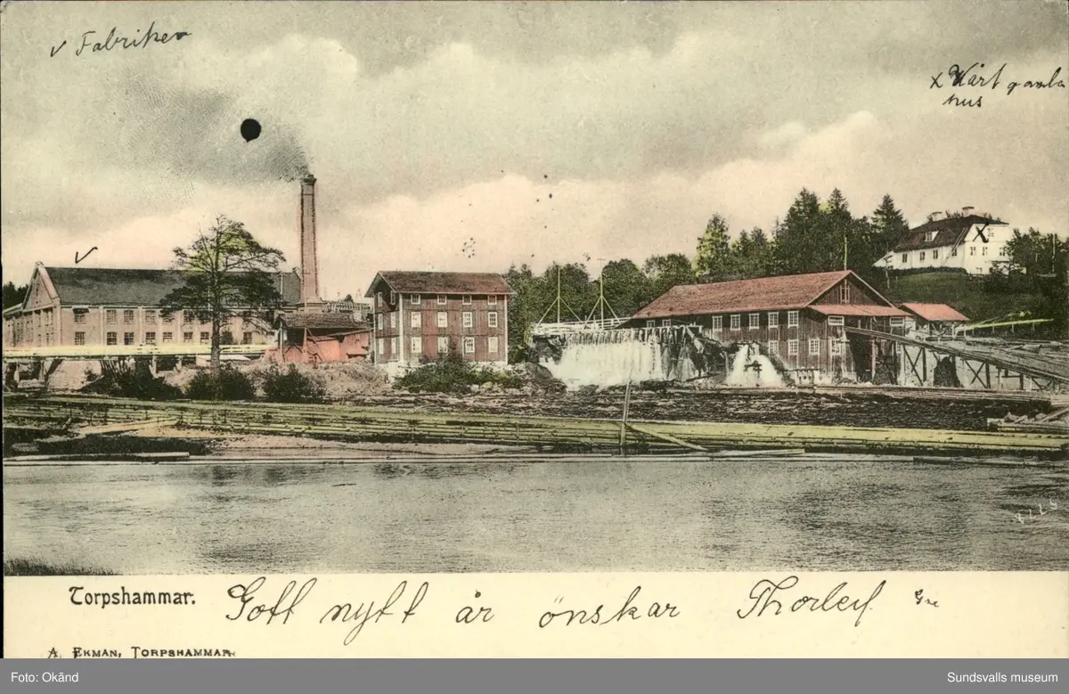 Vykort med motiv över fabriken i Torpshammar.