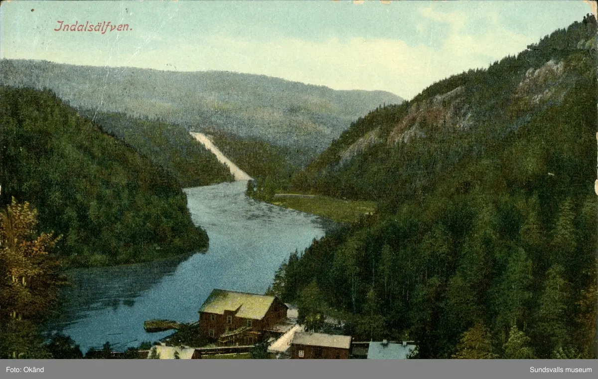 Vykort med motiv över Sillresåg vid Indalsälven.
