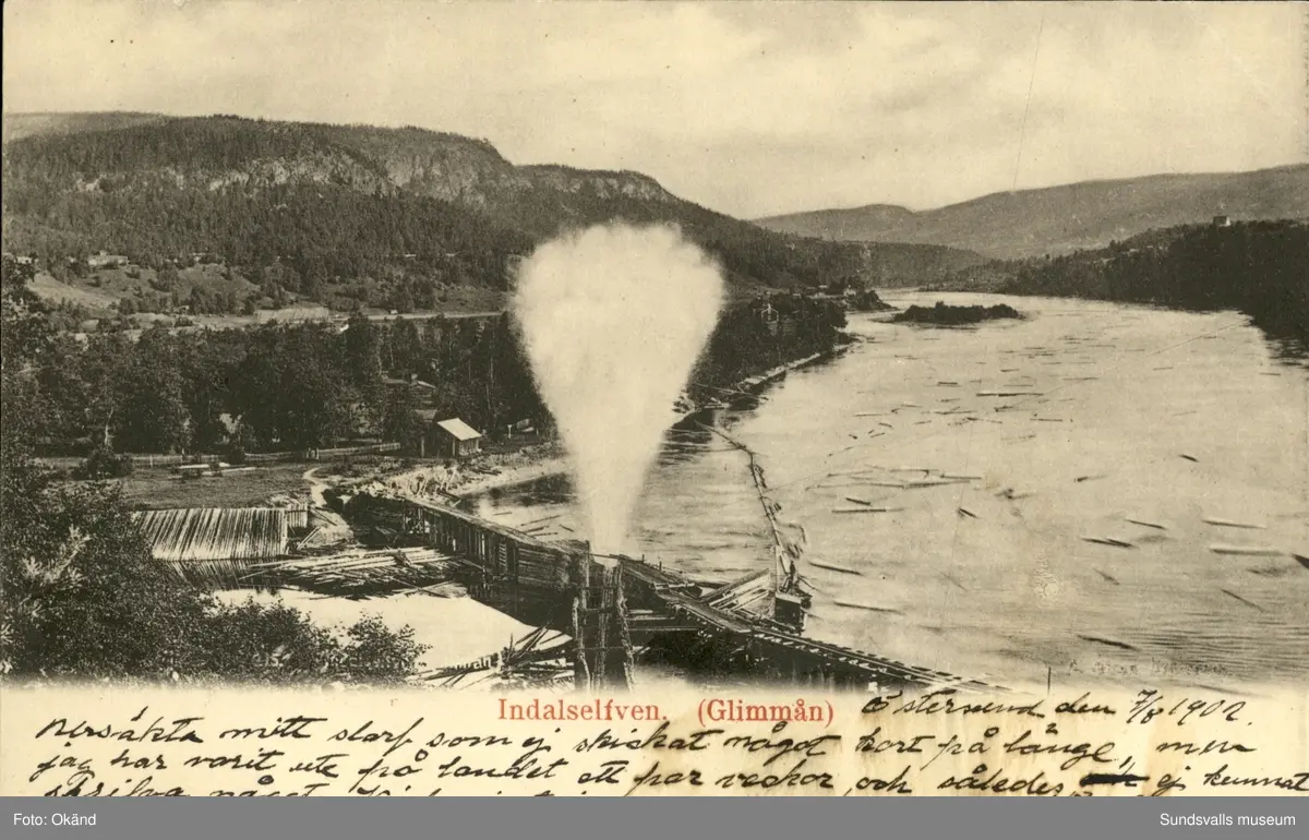 Vykort med motiv över Glimånrännan vid Indalsälven.