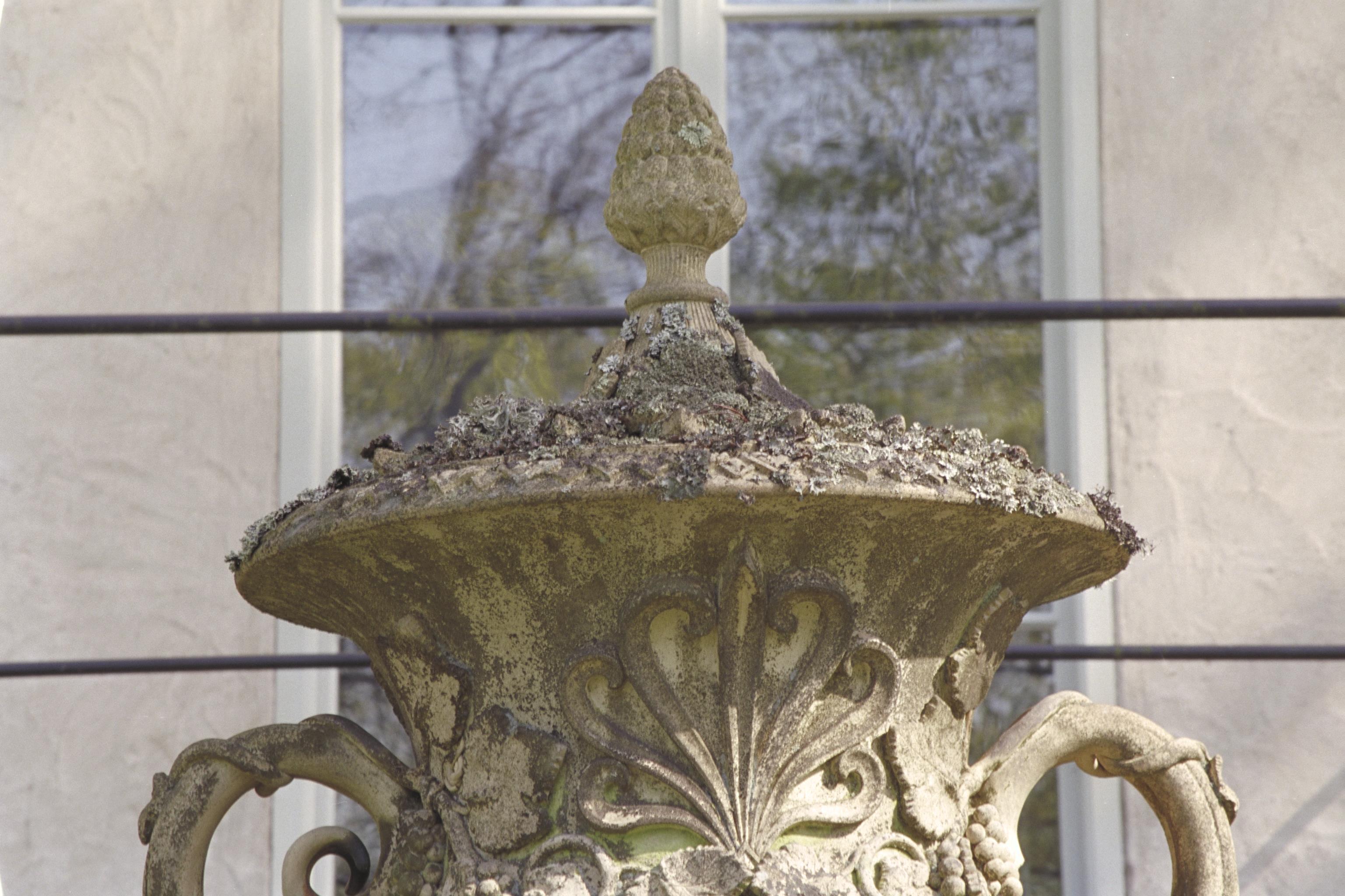 Urnan vid huvudbyggnadens västra fasad. Urnans översta del.