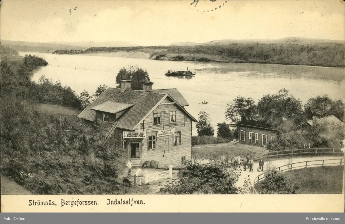 Vykort med motiv över Strömnäs, Bergeforsen vid Indalsälven.
