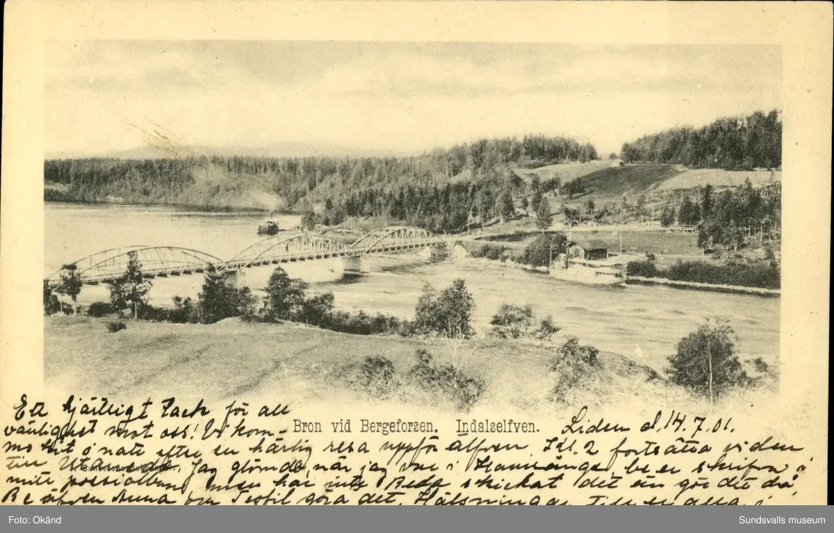 Vykort med motiv över bron i Bergeforsen.