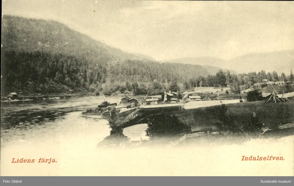 Vykort med motiv över Lidenfärja som trafikerade Indalsälven.