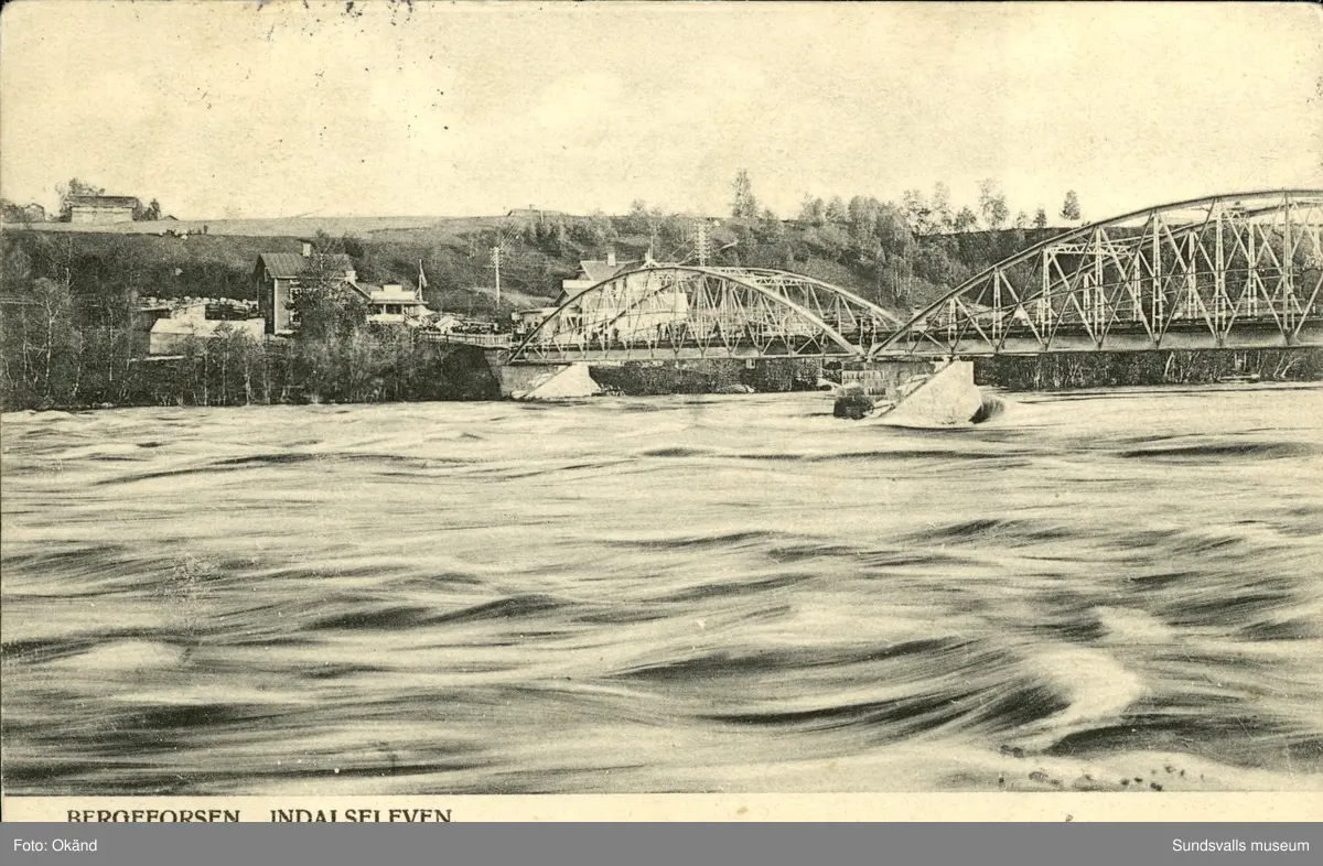 Vykort med motiv över Bergeforsen och Indalsälven.