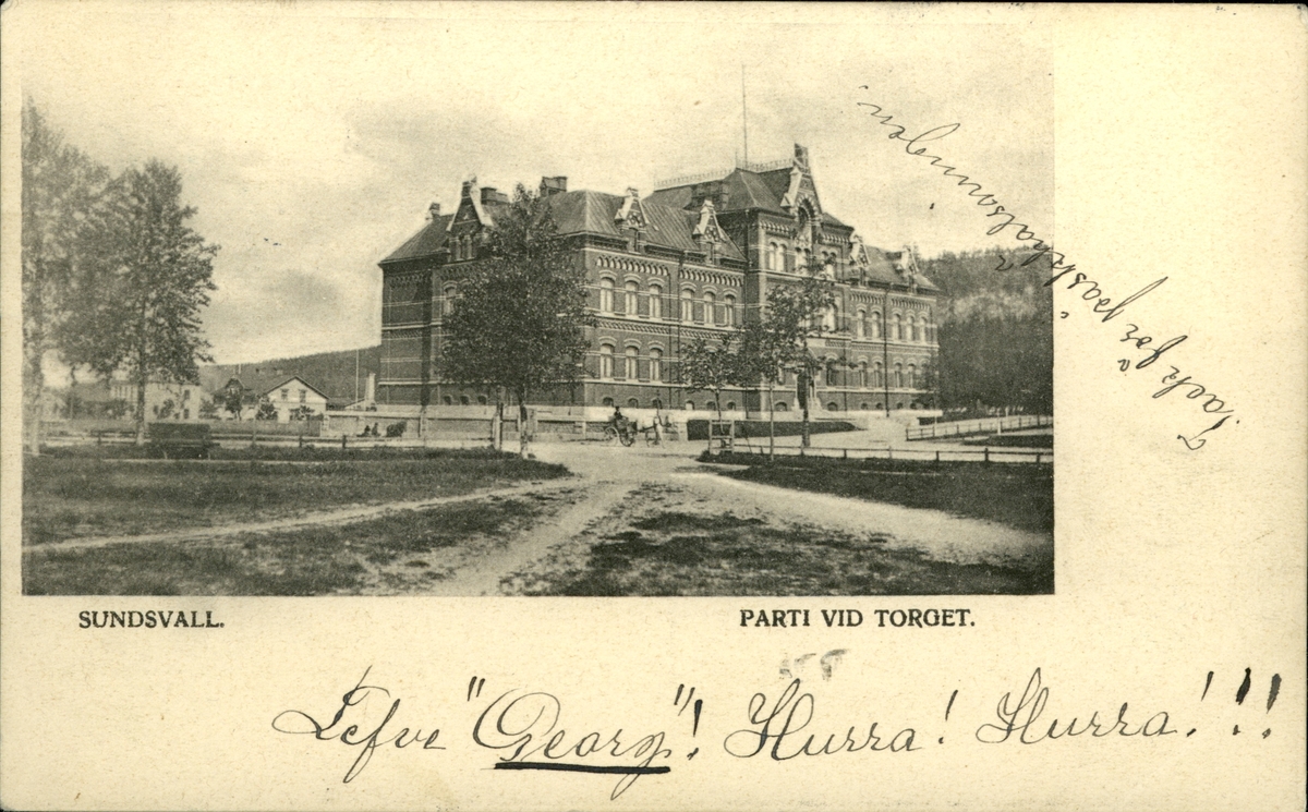 Titel: Vykort med motiv över flickskolan i Sundsvall.