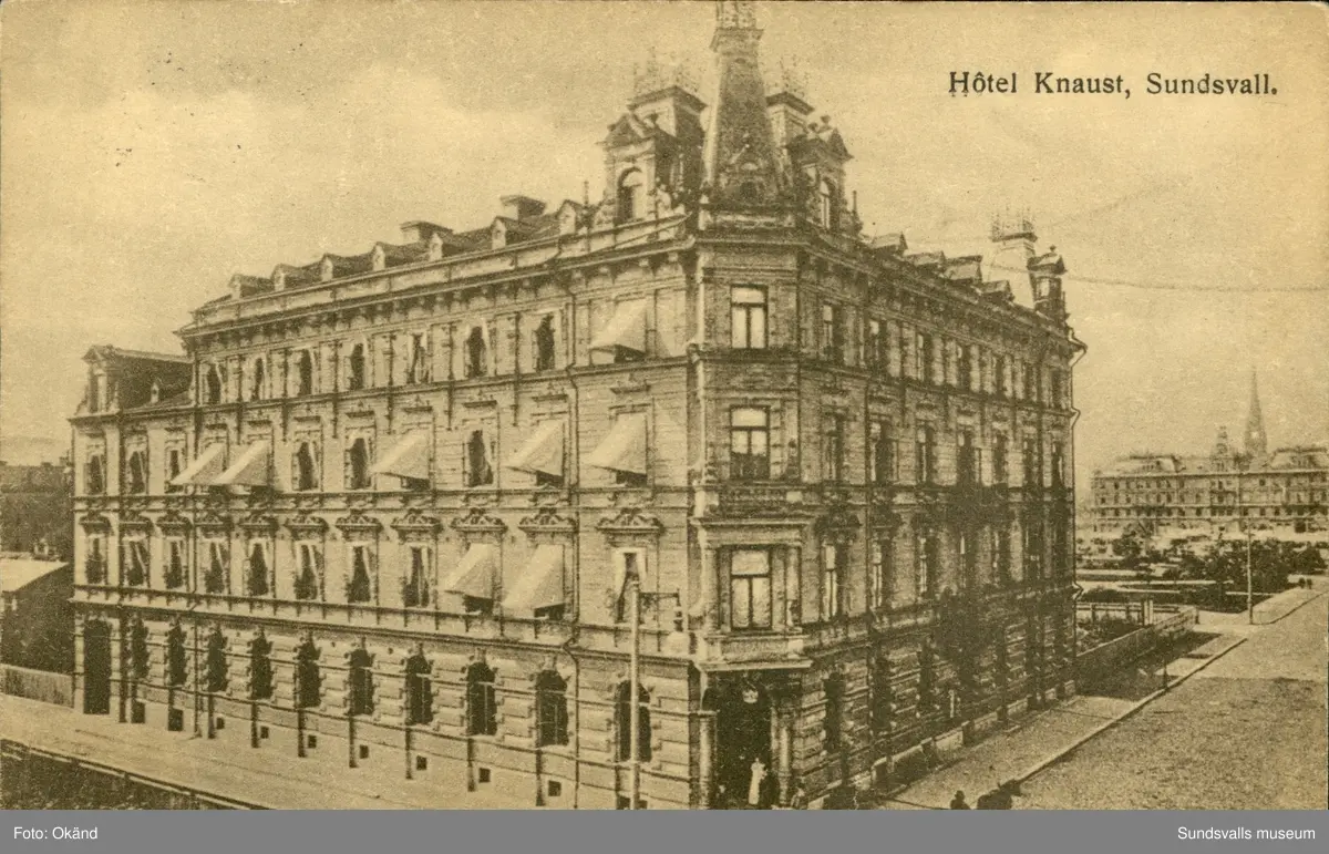 Vykort med motiv över Hotell Knaust i Sundsvall.