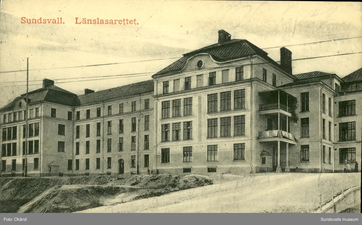 Vykort med motiv över Länslasarettet i Sundsvall.
