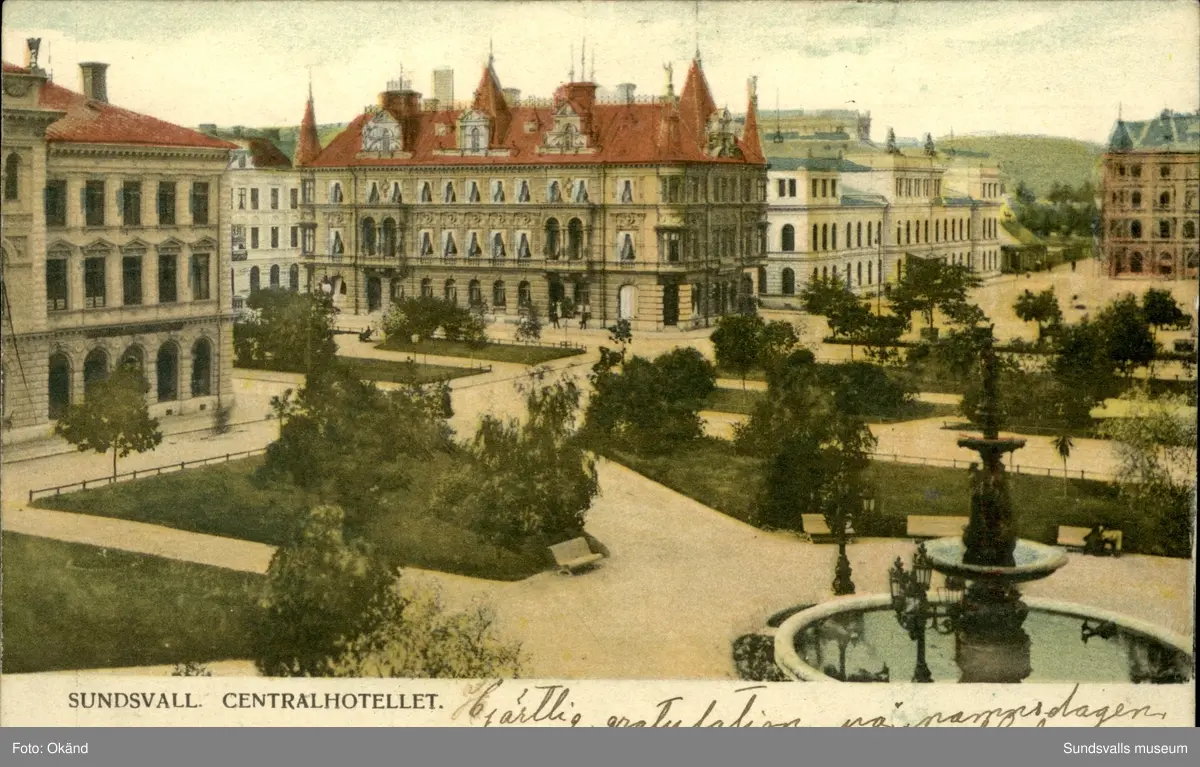 Vykort med motiv över Centralhotellet i Sundsvall.