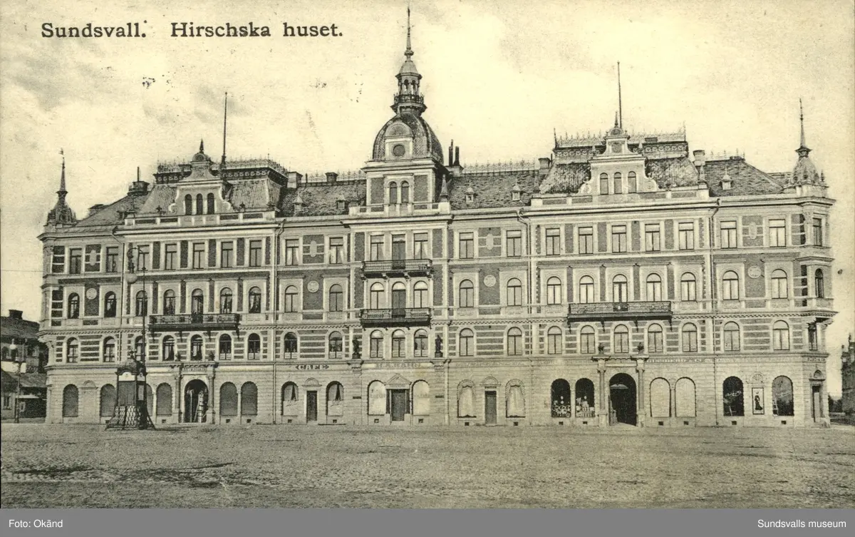 Vykort med motiv över Hirschskahuset i Sundsvall.