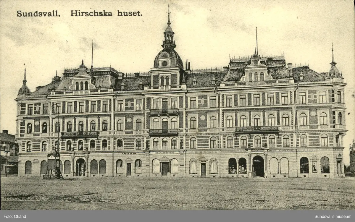 Vykort med motiv över Hirschskahuset i Sundsvall.