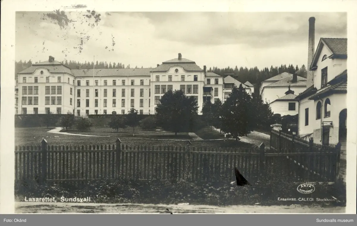 Vykort med motiv över Länslasarettet i Sundsvall.