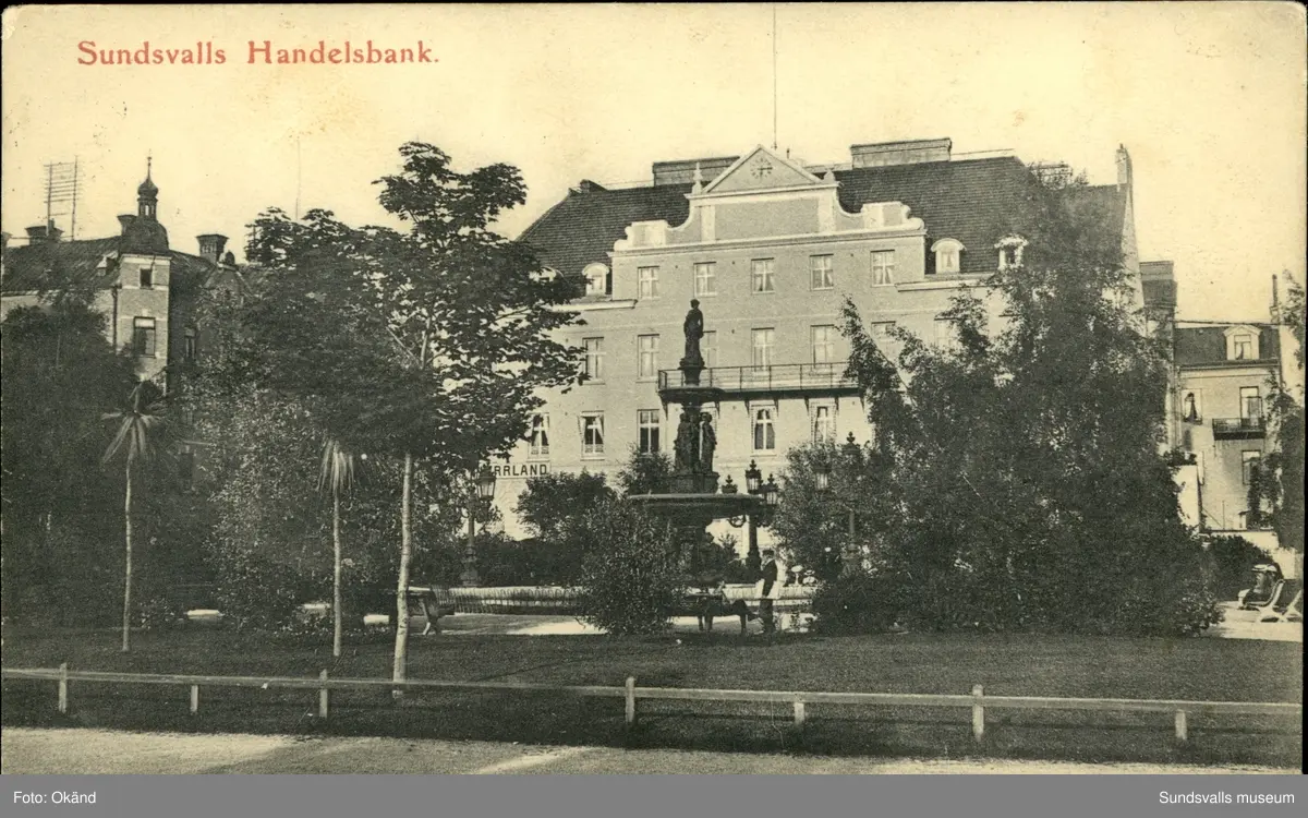 Vykort med motiv över Handelsbanken i Sundsvall.