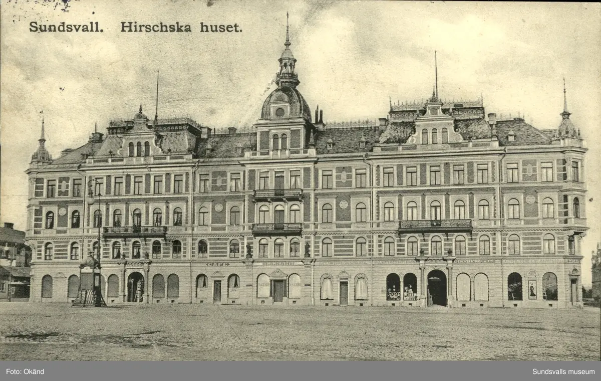 Vykort med motiv över Hirschskahuset i Sundsvall.