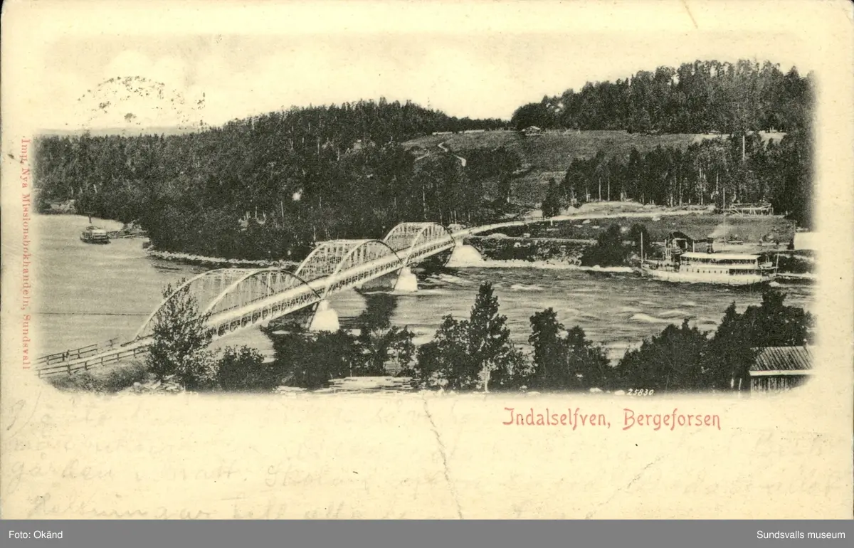 Vykort med motiv över Bergeforsen vid Indalsälven i Timrå.