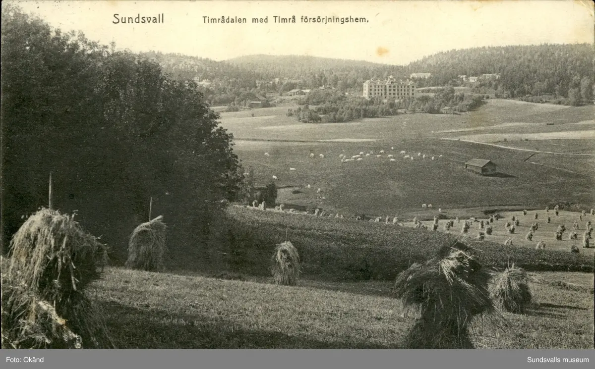 Vykort med motiv över Timrådalen med Timrå försörjningshem.
