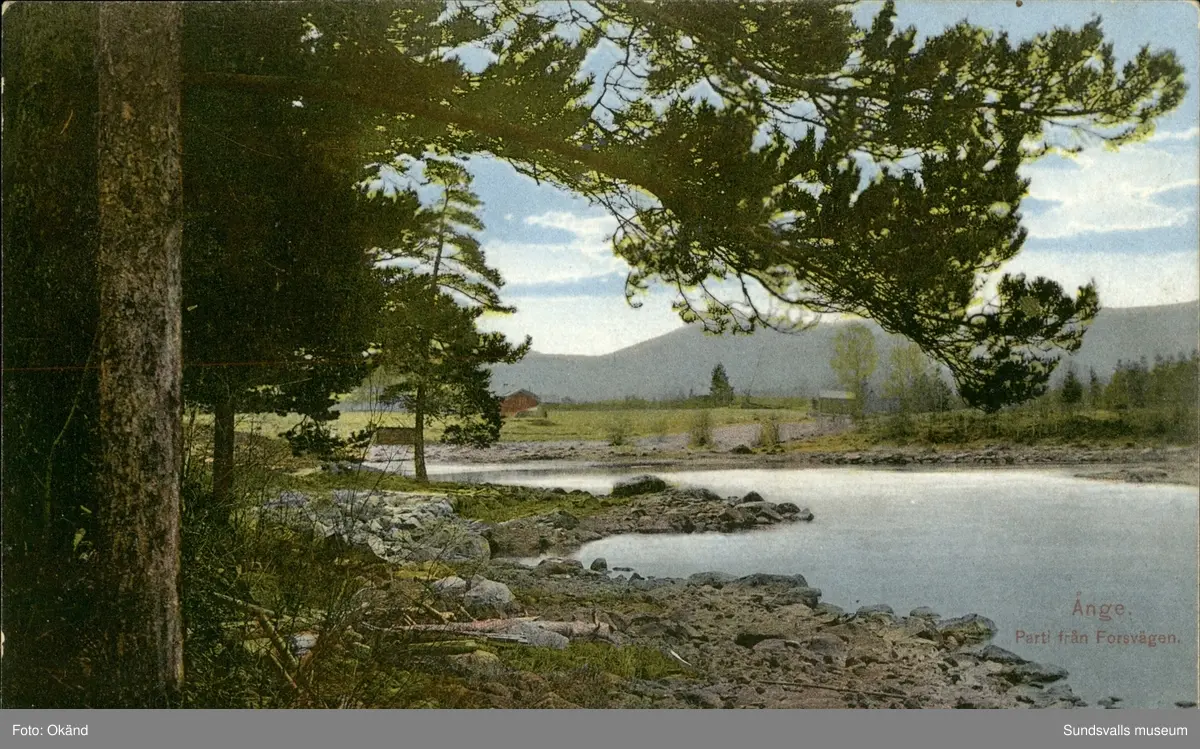 Vykort med motiv över parti från Forsvägen i Ånge.