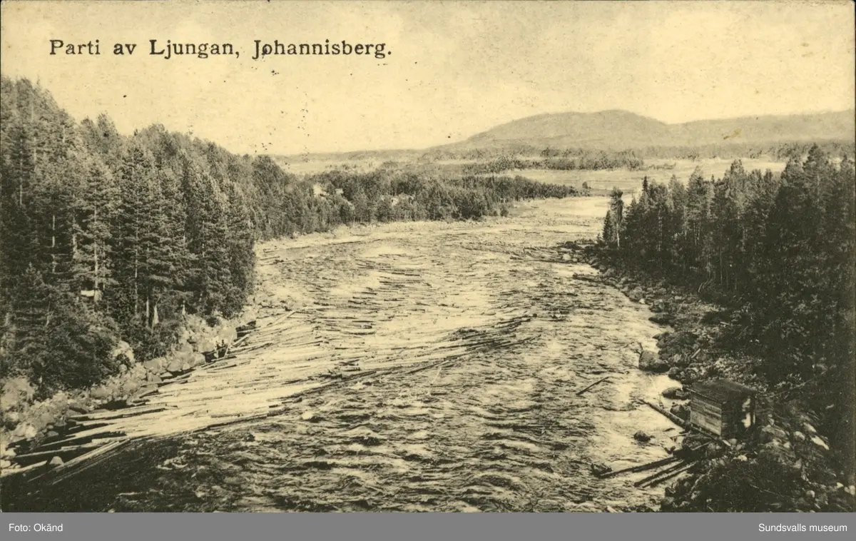 Vykort med motiv över Ljungan vid Ljungaverk.