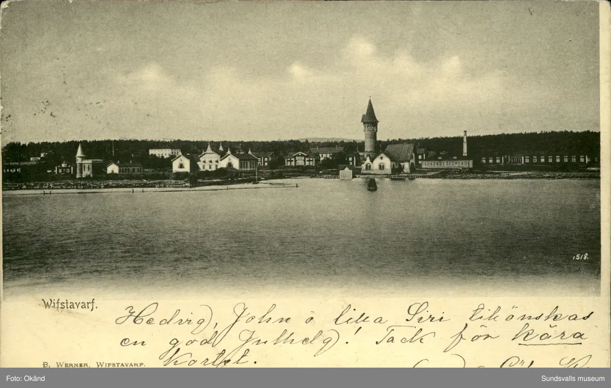 Vykort med motiv över Vivstavarv i Timrå. Spruthuset ses i mitten av bilden.
