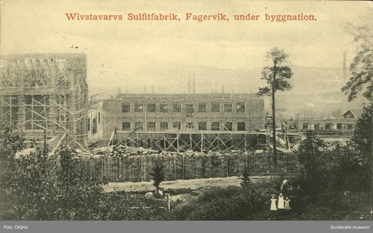 Vykort med motiv över Wifstavarvs Sulfitfabrik, Fagervik under byggnation i Timrå.