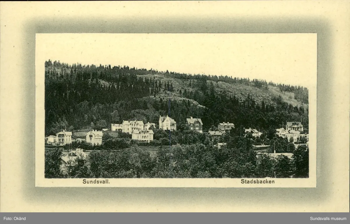 Vykort med motiv över Stadsbacken i Sundsvall.