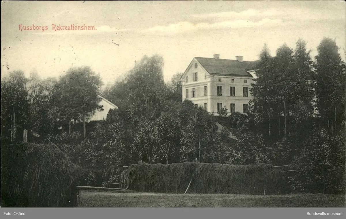 Vykort med motiv på Hussborgs rekreaktionshem i Johannisberg. Brev- och postdaterat 1907.