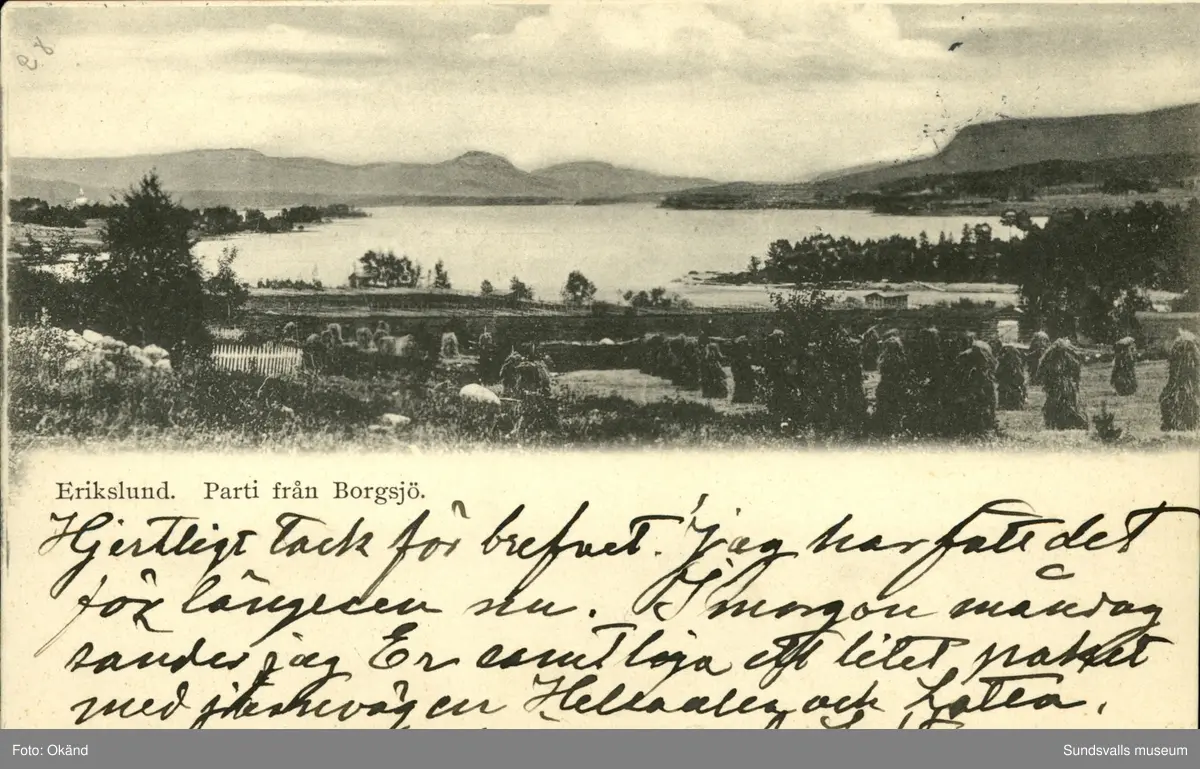 Vykort med motiv över parti av Borgsjö i Erikslund.
