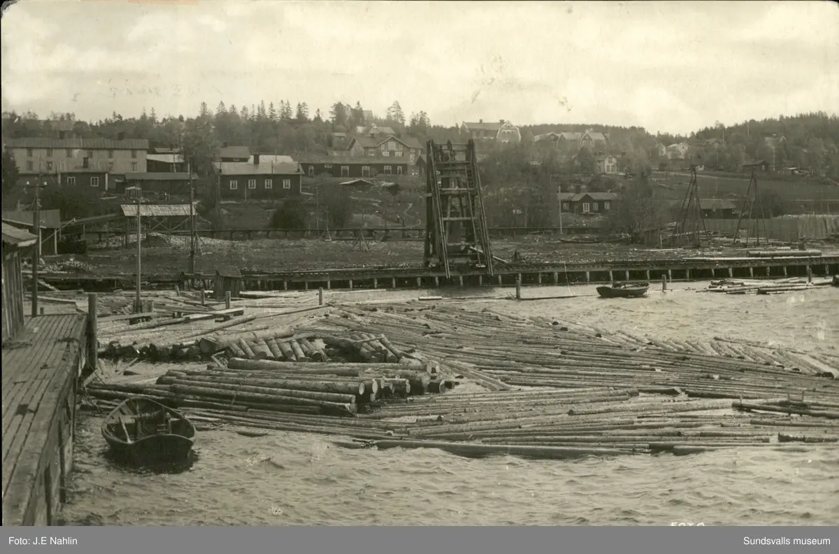 Vykort med motiv över Gustavsbergs sågverk på Alnö.