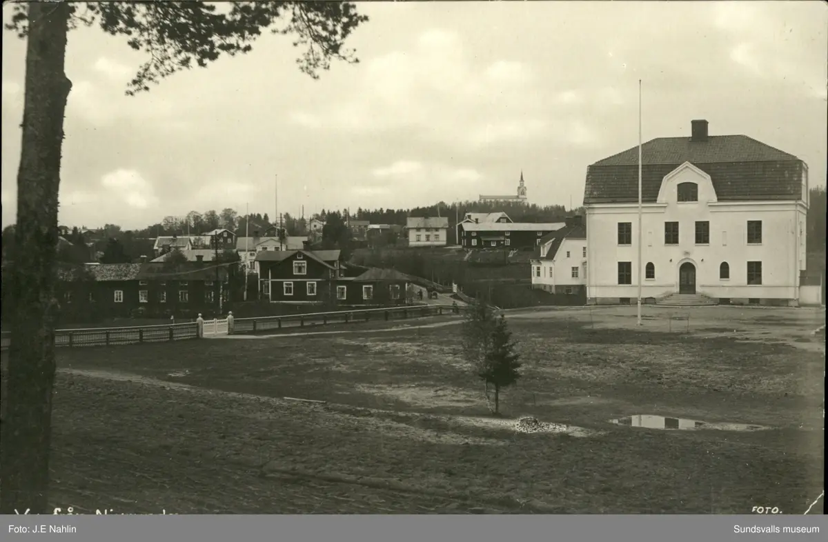 Vykort med motiv över parti av Njurunda utanför Sundsvall.