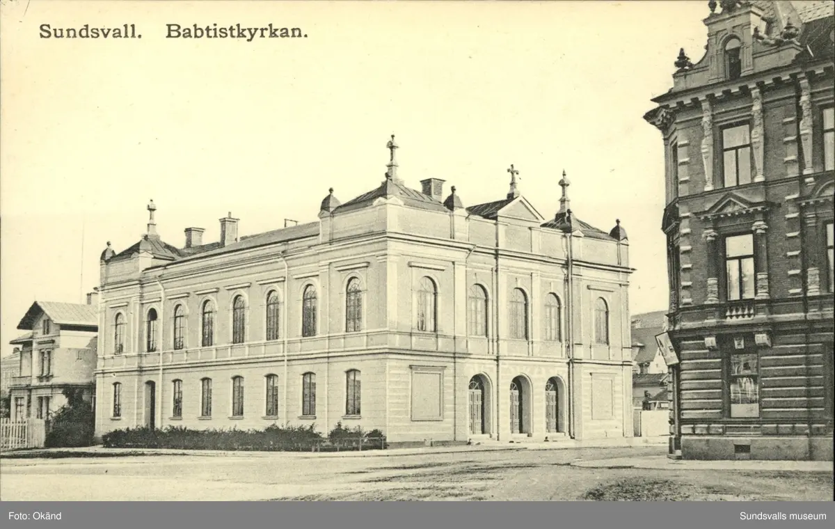 Vykort med motiv över Baptistkyrkan i Sundsvall.