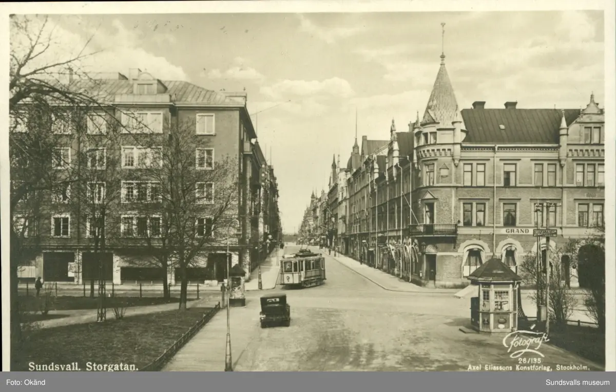 Titel: Vykort med motiv över Storgatan i Sundsvall.