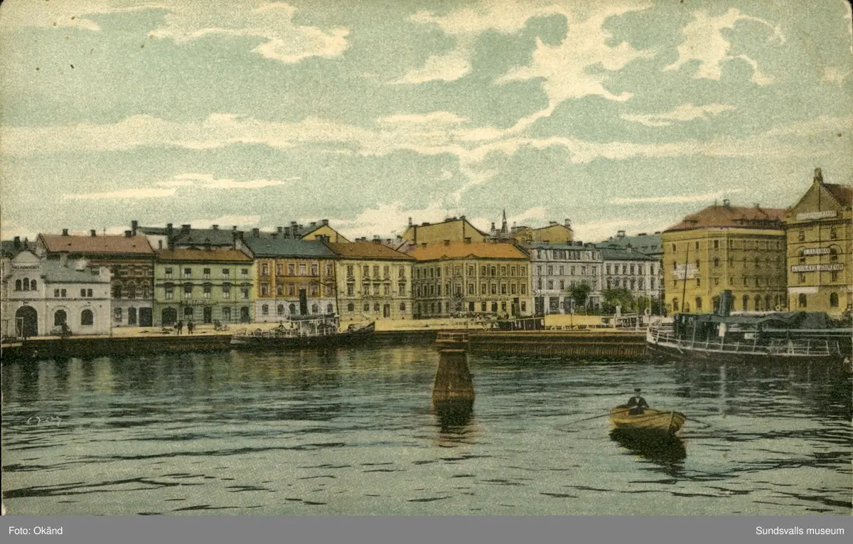Vykort med motiv över Hamnen i Sundsvall.