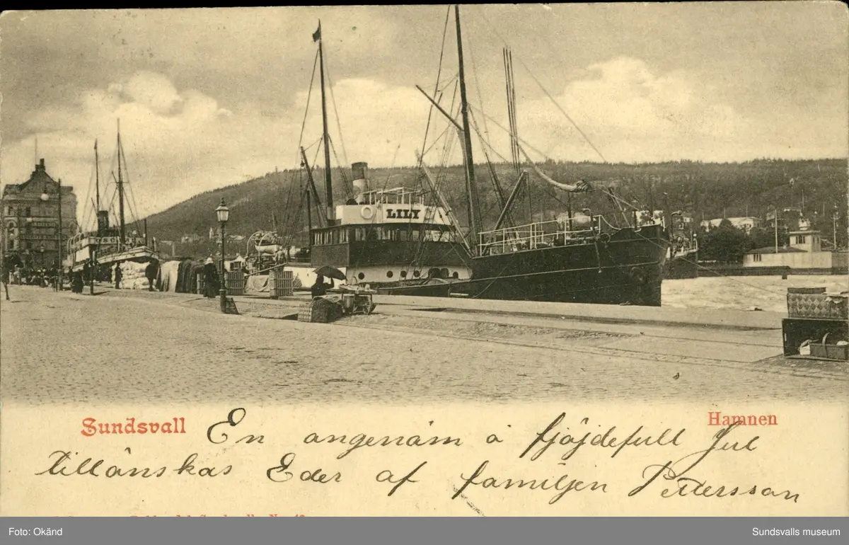 Vykort med motiv över Hamnen i Sundsvall.