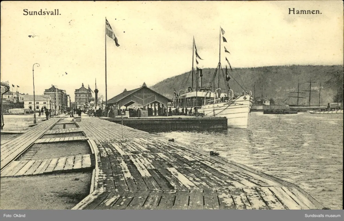 Vykort med motiv över Hamnen i Sundsvall.