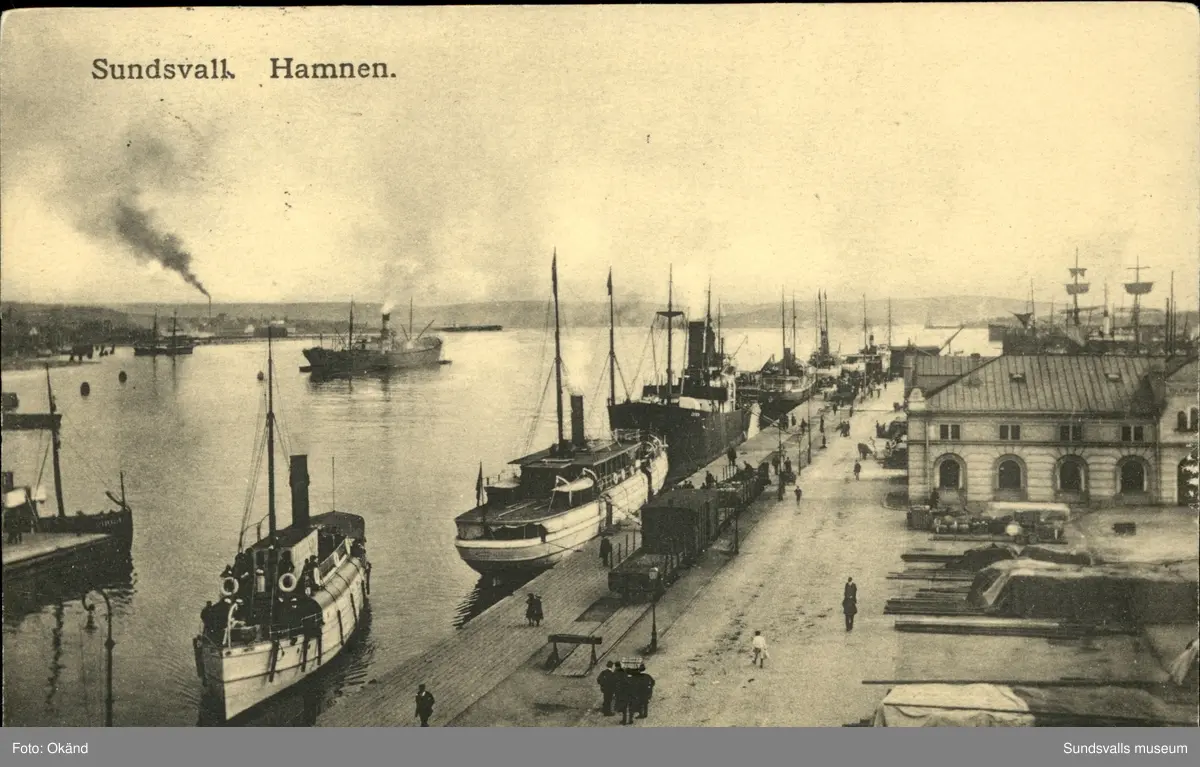 Vykort med motiv över Hamnen i Sundsvall.