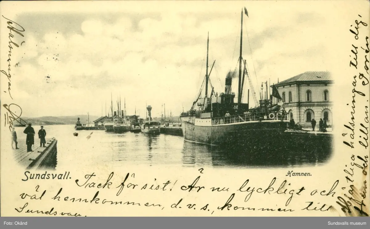 Vykort med motiv över Hamnen i Sundsvall.