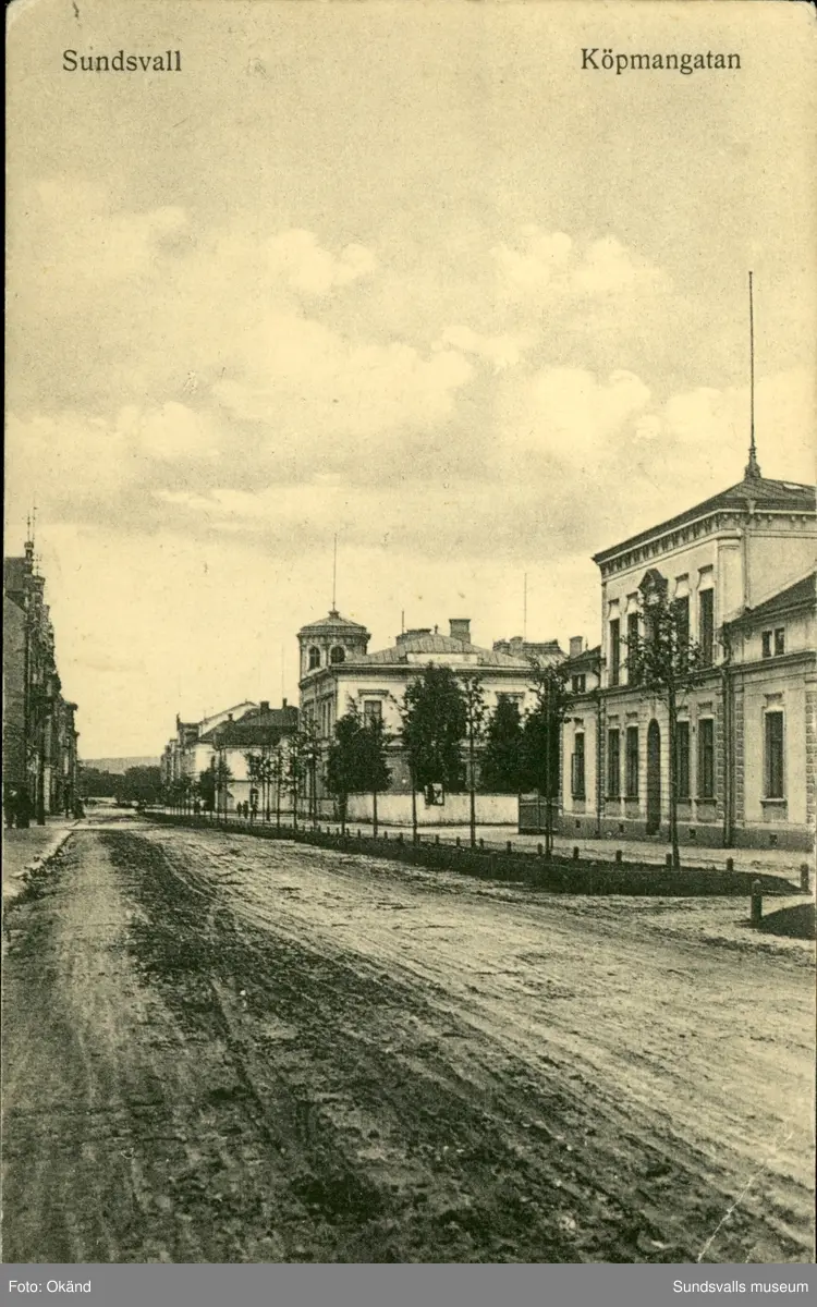 Vykort med motiv över Köpmangatan i Sundsvall.