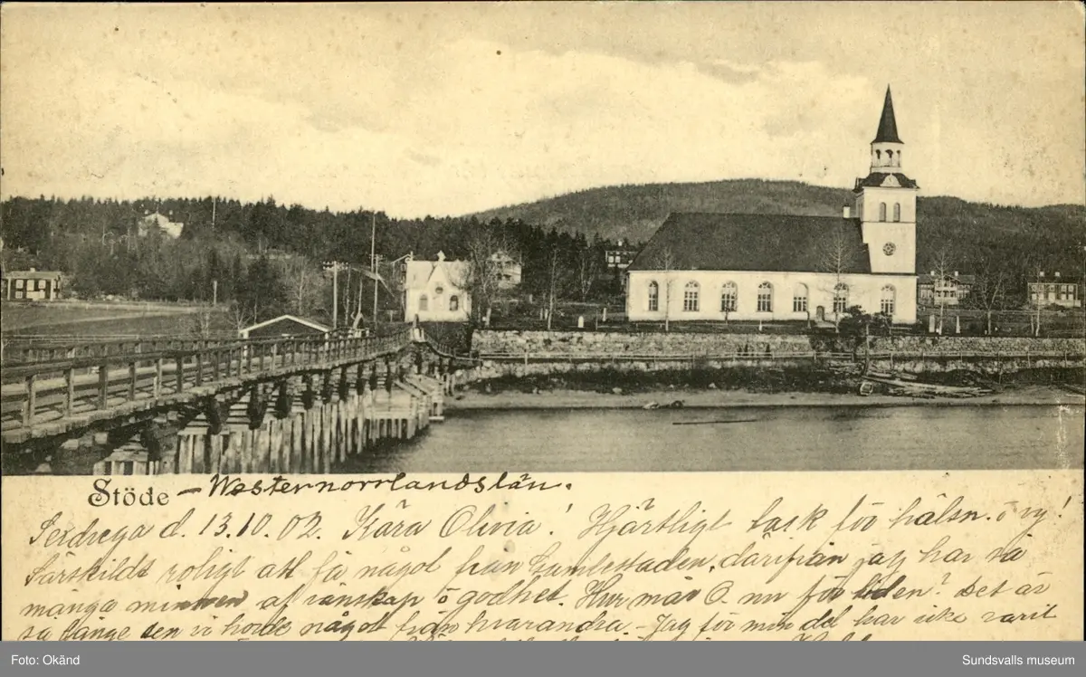 Vykort med motiv över kyrkan i Stöde.