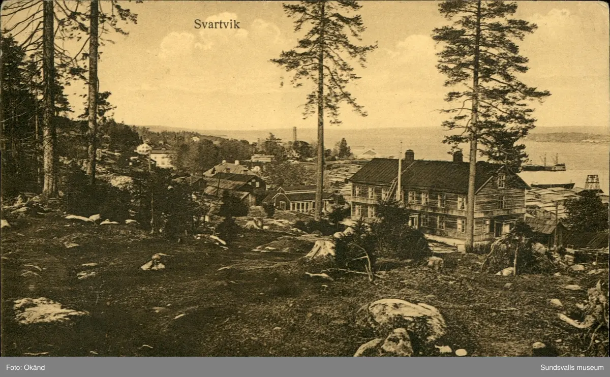 Vykort med motiv över ett parti av Svartvik utanför Sundsvall.
