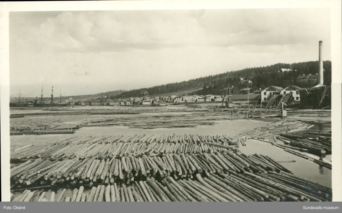 Vykort med motiv över Karslviks sågverk på Alnö.