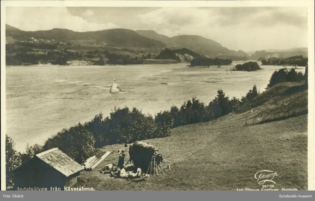 Vykort med motiv över Indalsälven sett från Kävstabron.
