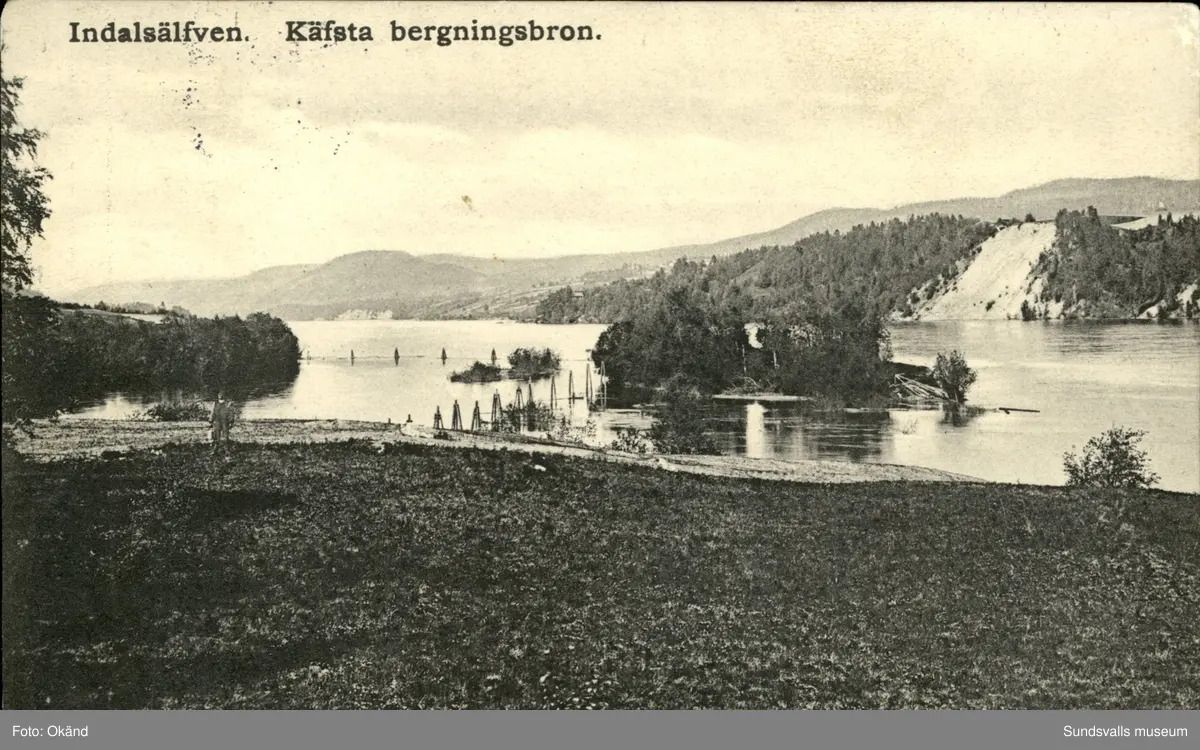 Vykort med motiv över Indalsälven och Kävsta bergningsbro.