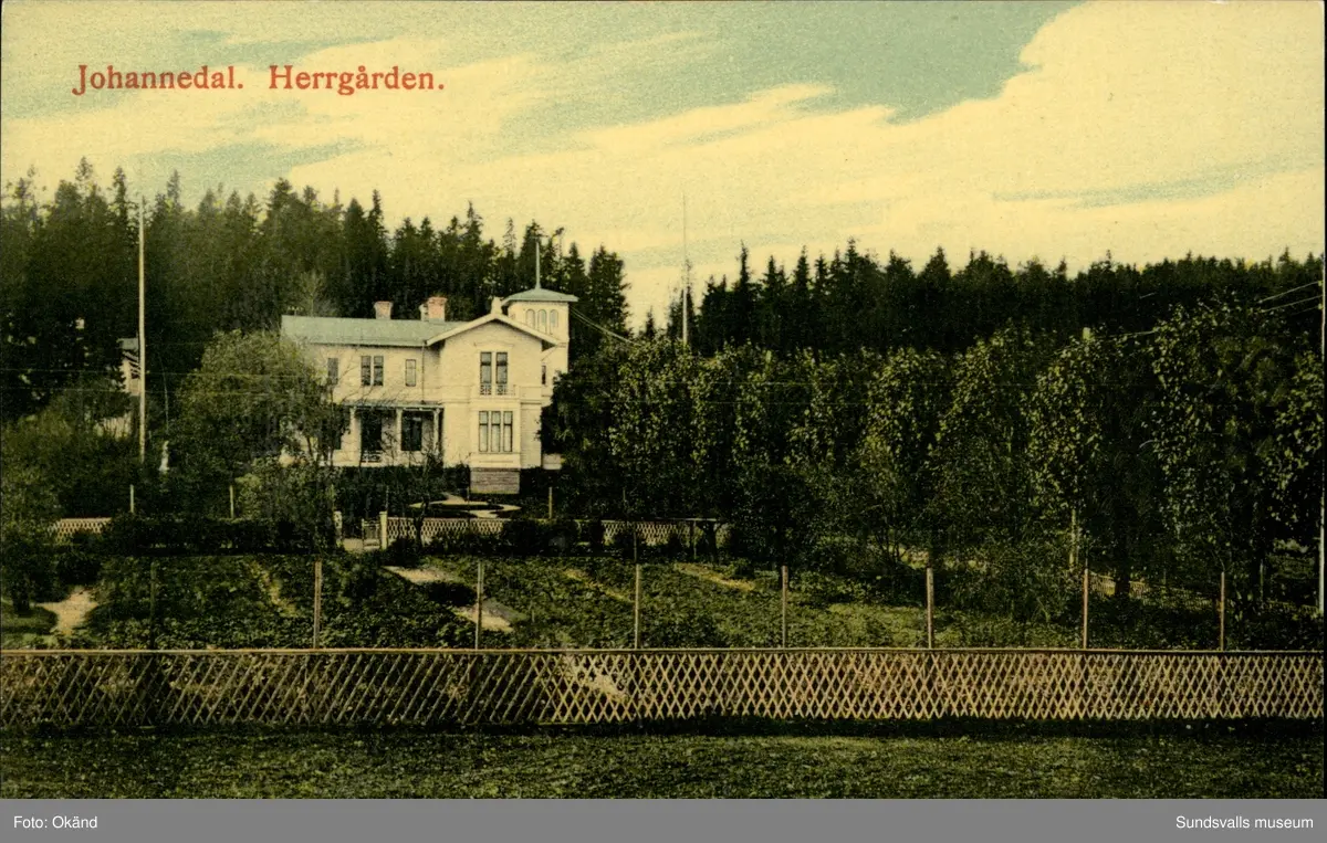 Vykort med motiv över Johannedals herrgård utanför Sundsvall.