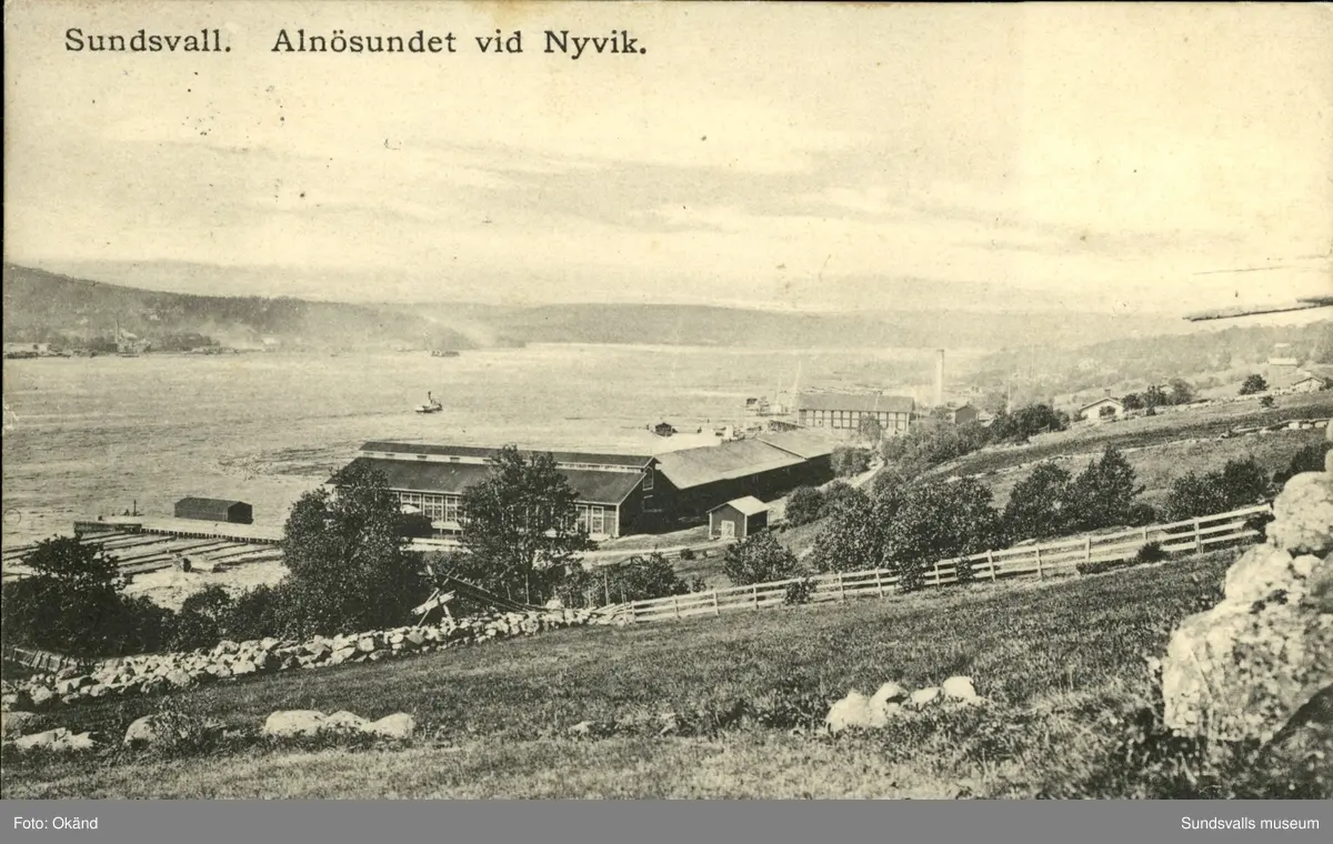 Vykort med motiv över Alnösundet vid Nyvik.