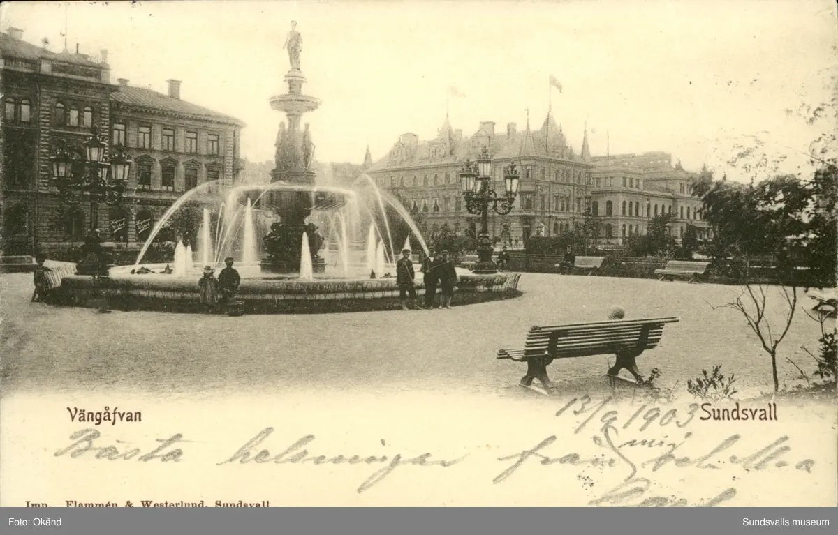 Titel: Vykort med motiv över Vängåvan i Sundsvall.